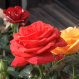 クレイジーアイは複色の薔薇でピンクのまだら模様。コンフィデンシャルは、ぱっと明るいオレンジ色で周りが華やぎます。